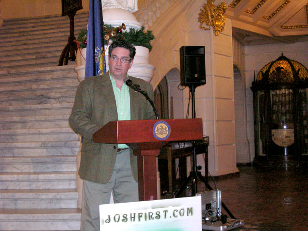 Josh First's campaign for the Pennsylvania's 17th District Congressional seat currently held by Tim Holden (D-Schuylkill) was officially kicked off today when First made a speech in the Rotunda in the Pennsylvania State Capitol, in Harrisburg. The speech was attended by two dozen loyal supporters who braved the cold winter weather to join Josh.